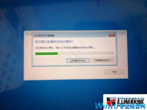 最后等待系统还原完成,还原成功时会有重新启动的提示,如图: