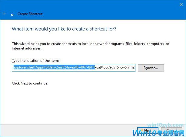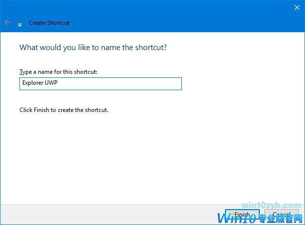 4.键入快捷方式的名称(例如,Explorer UWP)。