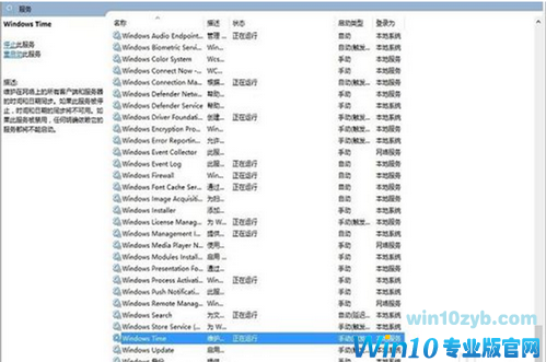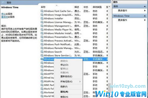 8、在右侧的服务清单中,找到windows time服务,这里的服务是按首字母排列的,所以这个服务已在末属,在该服务上单击右键,选择启动。