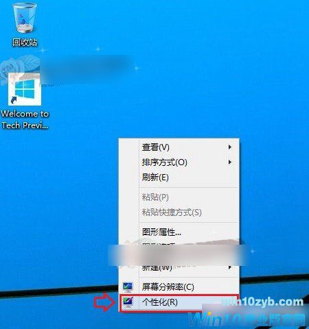 一、首先在Win10桌面空白处右键,在弹出的菜单中选择【个性化】,如下图所示。