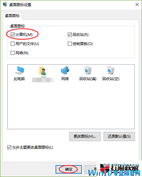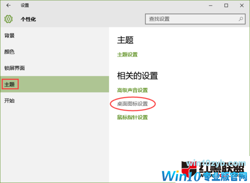 左侧选择“主题”,右侧选“桌面图标设置”。