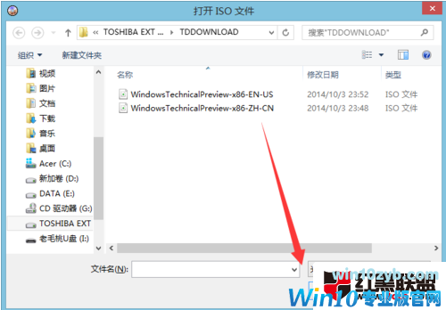 选择你事先下载好的WIN10镜像文件,镜像文件无需解压,UltraISO会自动识别的,选择文件然后再点击“打开“