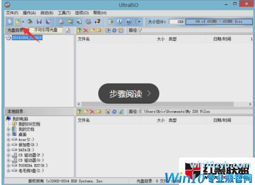 安装UltraISO,启动UltraISO,进入UltraISO软件以后,在工具栏中点击打开按钮。