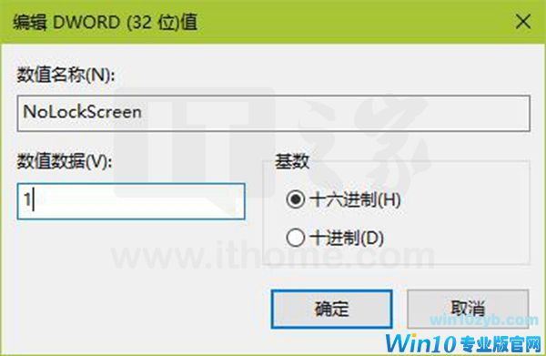 双击你刚刚新建的名为NoLockScreen的DWORD(32位)值,将数值数据下的输入框中的数字设置为1,点击确定;