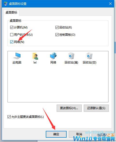 3、勾选“网络”选项,然后点击确定退出;