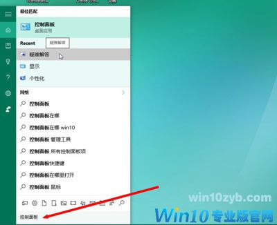 2、输入“控制面板”,并点击【疑难解答】。