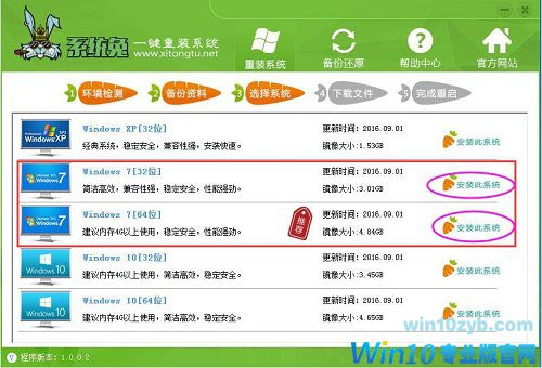 下载系统兔一键重装到电脑上,安装并打开软件,点击立即开始重装,通过环境检查和资料备份后就可以选择系统了,在这里选择你要的win7版本是32位还是64位,然后点击系统后面的“安装”,系统兔就会帮你自动完成win7系统的下载和重装过程。win10一键装回win7,就是这么简单。