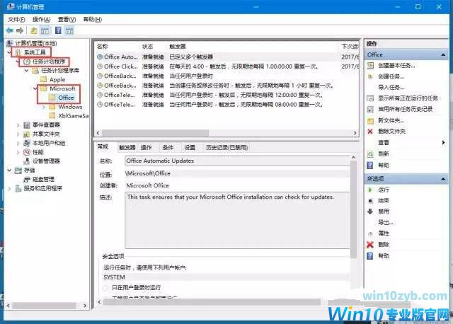 二、然后选择“系统工具” - “任务计划程序” - “任务计划程序库” - “Microsoft” - “Office”。
