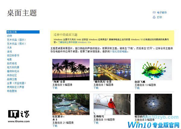 6月7日消息 此前IT之家曾报道过,Win10应用商店将允许开发者上架Windows主题包应用,其包括系统主题、音效、壁纸等以全新的形式出现。现在IT之家发现,微软桌面主题官网发布了通知称桌面主题正在迁移中,Windows 主题不久将从 Web 迁移至 Windows 应用商店。