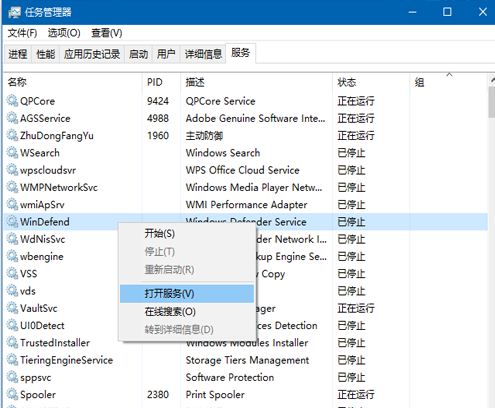 1、按Ctrl+Alt+Delete键,选择进入任务管理器,切换至服务项目栏,右击其中一个服务,选择“打开服务”;