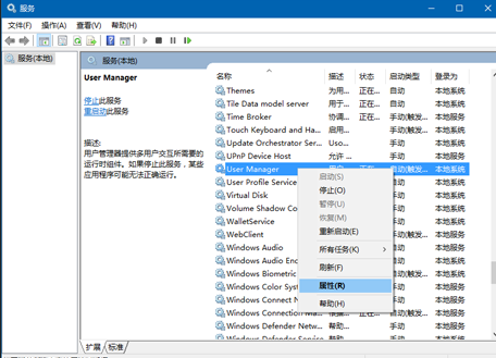 2、在打开的窗口中找到User Manage,右击选择“属性”;