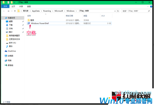 (注意:如果我们在Windows PowerShell名称前按一下空格键,系统在重命名后空格就会消除,按上述方法操作方可保留空格。)