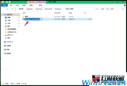 方法一:删除开始菜单窗口中的Windows PowerShell快捷方式。