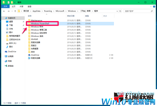 在程序文件夹中,我们查找需要放在开始菜单顶部的程序快捷方式,如我们需要把Windows PowerShell程序放在开始菜单顶部,则点击:Windows PowerShell文件夹;