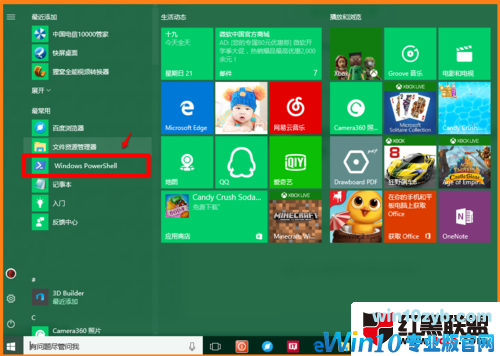 点击系统桌面左下角的【开始】,我们可以看到Windows PowerShell程序已经显示在开始菜单的【最常用】项中;