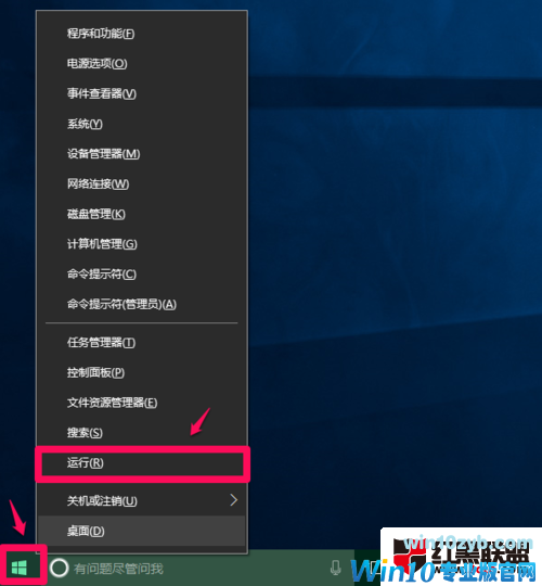 右键点击系统桌面左下角的【开始】,在开始菜单中点击【运行】,打开运行对话框;