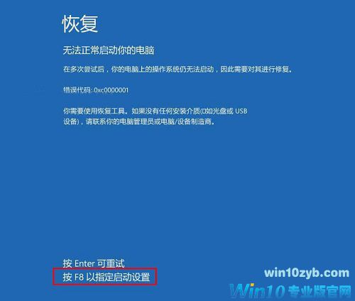 学完上面的知识是不是还不过瘾?下面小编再为大家分享一下电脑关机出现蓝屏的处理方法吧。 Win10电脑关机出现蓝屏的处理方法: 1、重新启动电脑,开机画面出现时,按F8进入恢复界面,然后再按F8以指定启动设置,如图: