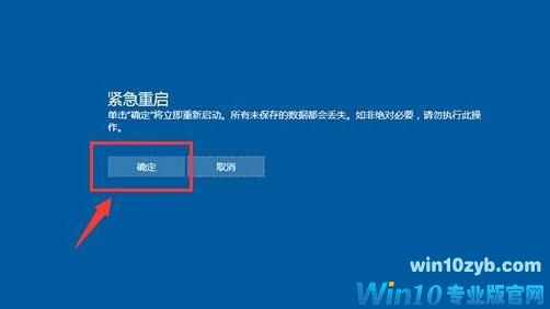 3、在紧急启动界面,点击“确定”,系统就会立马重启了。如下图所示: