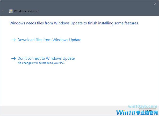 Windows 10可能需要连接到Windows Update才能下载.Net Framework 3.5版本,将其安装在计算机上。 您需要允许此连接继续。