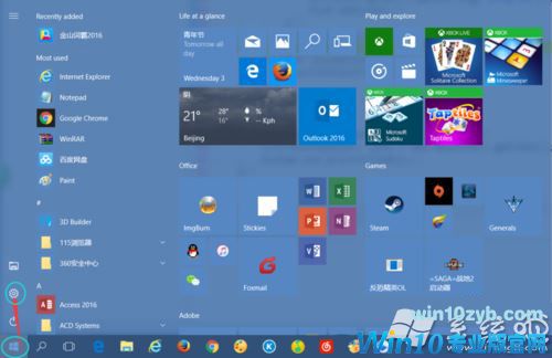 2、因为是英文系统,所以截图全部以英文为主。但是大致位置,步骤却是一模一样的。我们点击开始菜单,点击小齿轮(设置)。