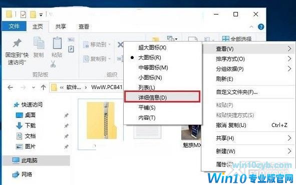 1、首先打开需要查看后缀名的文件夹,如果文件是放在桌面上,则先将其复制到一个文件夹中去,然后在文件夹空白位置点击鼠标右键,然后依次点击「查看」-「查看详细信息」,如图。