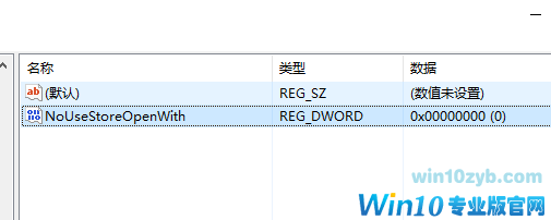 3、新建DWORD(32位)值,命名为NoUseStoreOpenWith;