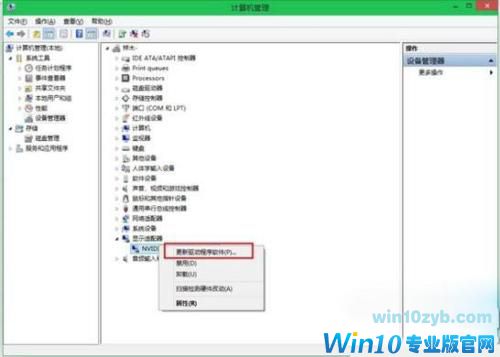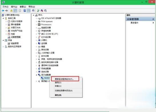 1、打开计算机管理——设备管理器——显示适配器点击“更新驱动程序软件”;