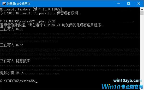 这项功能在Windows XP、Win7、Win8.1、Win10中都存在,系统自带了一个名为cipher的命令行工具,其用途是使用EFS加密文件系统对文件进行加密。不过这个工具还有一个附加功能,可以用来对硬盘上的剩余空间进行擦写,从而安全删除剩余空间中包含的已删除文件。该工具使用方法非常简单,具体如下: