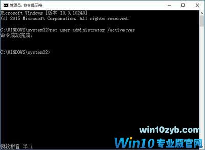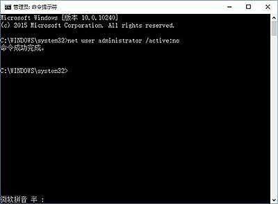 此时管理员账户被关闭。若要再次开启,反复执行上述过程即可。