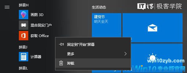 根据国家或者地区,这些推荐应用可能会有所不同,常见的有Candy Crush Soda Saga、Minecraft:Windows 10 Edition、获取Office这些,这些应用程序对一些用户比较有用,然而有些用户可能永远也不会打开它们。要卸载它们十分容易,只要在开始菜单中选中该应用程序,点击右键-卸载,或者打开设置-应用,选中该应用程序然后点击卸载即可。
