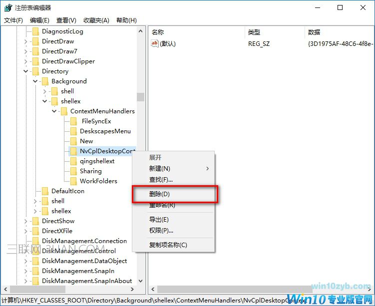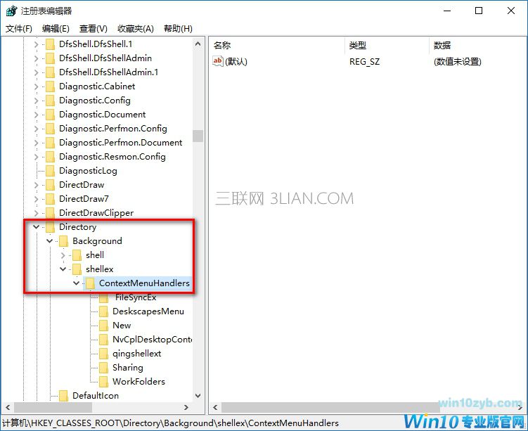 双击,找到HKEY_CLASSES_ROOTDirectoryBackgroundshellexContextMenuHandlers win10右键卡死