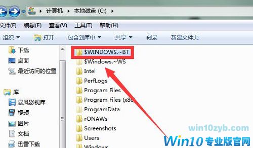 2、进入C盘后,找到$WINDOWS.~BT文件并删除,退出C盘。