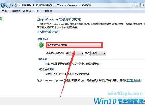 2、在重要更新一栏选择【自动安装更新】,点击【确定】退出控制面板。接下来重新运行安装工具,看问题是否得到解决。如果没有解决,请看方法三。