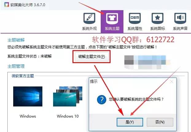 但默认的高对比主题实在太难看,我们还可以选择第三方主题。在使用第三方主题前,需要对系统主题文件进行石皮解。建议使用软媒魔方中的美化大师来石皮解主题文件。