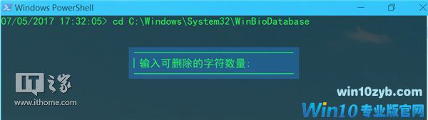 大家又猜猜这个“输入可删除的字符数量”要怎么理解,看起来是要删除一定数量的字符,一定是这样理解的,错!删除字符没错,但你要是输入一个数字就知道什么都不会发生,微软就是这么坑。F4快捷键是修改输入文本的,比如上图中,我不想进WinBioDatabase这个文件夹,我原本想进WindowsPowerShell文件夹,但是Tab键匹配错了,我可以继续按Tab键,直到匹配到WindowsPowerShell,也可用F4快捷键,把光标移动到WinBioDatabase的W位置,按下F4键,打个空格,WinBioDatabase就会消失了,可以重新键入WindowsPowerShell前几个字母,用Tab键匹配了,还是比较方便的,Tab键匹配在文件和文件夹比较多的文件夹中是比较慢的,使用F4相对来说快一些。