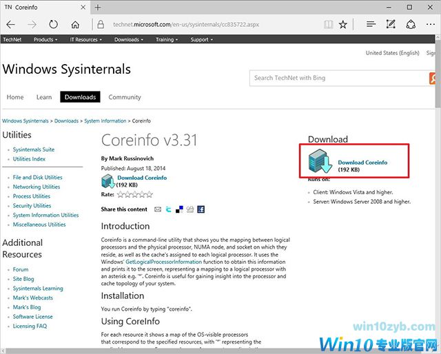 1.访问Windows Sysinternals并下载Coreinfo。