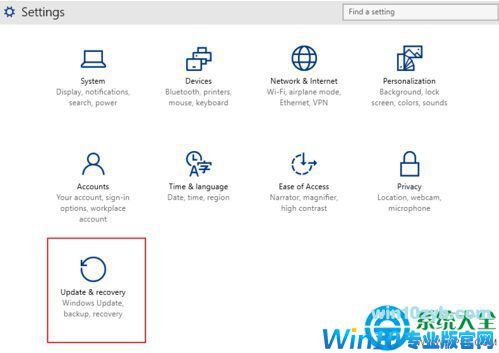 2、在设置界面中我们选择最后一个【更新&恢复】,如图所示: