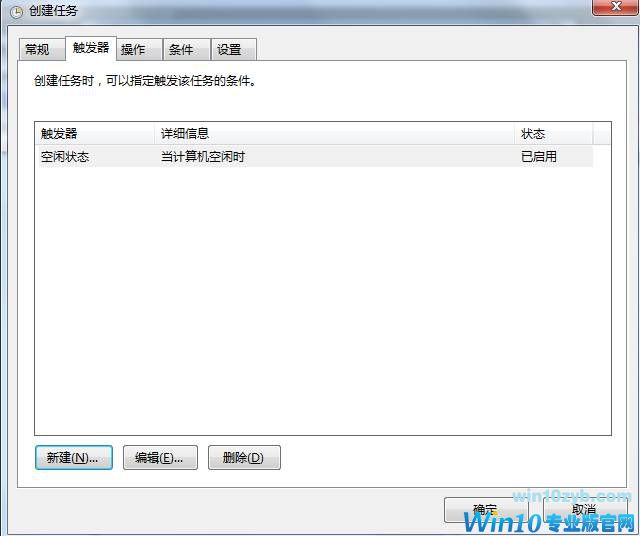 5.在打开的新建触发器中,点上面开始任务后面的下拉菜单,选空闲状态,点确定