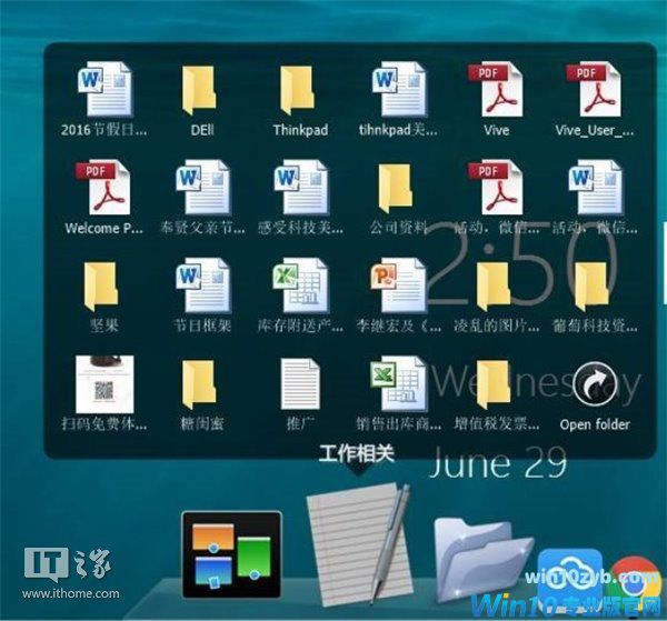 接下来整理你的桌面,换个漂亮的壁纸,把桌面上的快捷方式选择性的拖动到dock栏,剩余的归纳到一个文件夹存放在桌面之外的其他位置,你想要多干净就整多干净。比如: