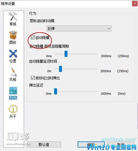 “行为”选项,勾选”自动隐藏“后dock栏平时会隐藏起来,鼠标经过才会出现,时间自行调整,然后“确定”。
