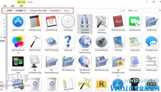 你可以把之前下载的文件夹中的mac图标全部放到软件的图标文件夹下,就会出现在这里。比我的是D:Program Files (x86)RocketDockIcons