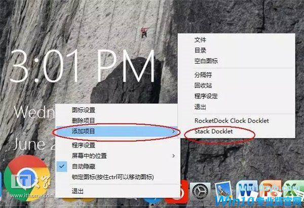 然后右键dock栏,选择“添加项目”-“stack Docklet”。