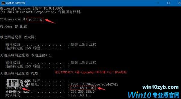 12.运转CMD号令→输出ipconfig→回车键→记下IPv4地点;