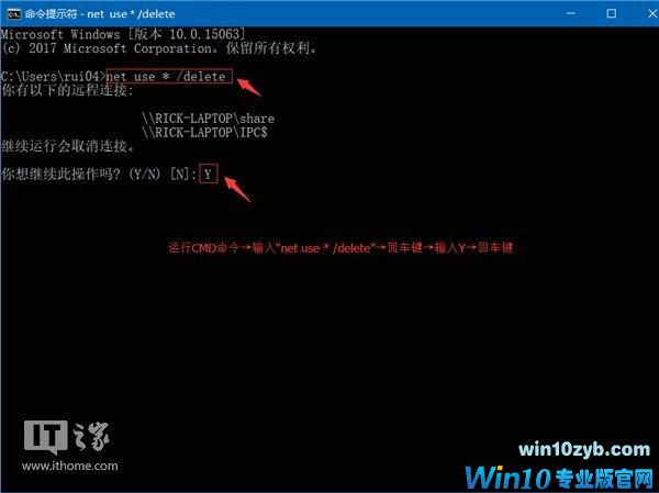1.运转CMD号令→输出“net use * /delete”→回车键→输出Y→回车键;(此步调只需初次操纵)
