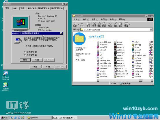 Syskey这个功能,早在Windows NT 4.0的时候就出现了。Windows NT 4.0和Windows 95几乎是在同一时期诞生的。那个时候,Windows 95更偏向大众娱乐,Windows NT更偏向工作生产力。虽说Windows NT 4.0比Windows 95更为稳定,但是Windows NT 4.0本身并无界面友好的设备管理器等管理页面,而且对多媒体功能(如DirectX)支持不佳,所以早年的Windows NT并未面向普通人开发使用——直到Windows 2000的诞生。