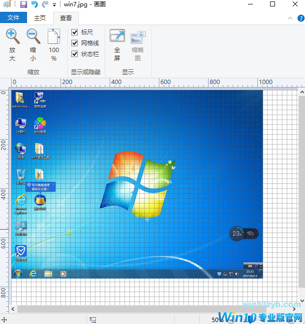 在查看图片时,特别是一些需要了解图片部分区域的大致尺寸时,可以利用标尺和网格线功能,方便用户更好的利用画图功能。操作时,可以在查看菜单中,勾选“标尺”和“网格线”即可。