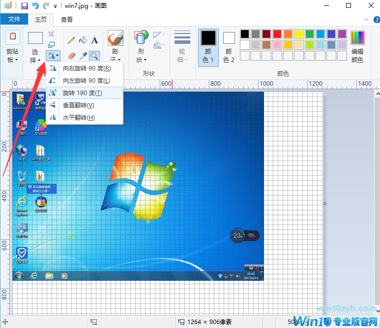 另外Win10画图还提供了图片的旋转方式操作,90度、180度、垂直和水平等。