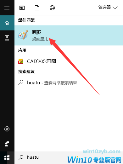 1、通过Win10的开始,搜索,输入“huatu",“画图”,即可启动Win10画图程序。