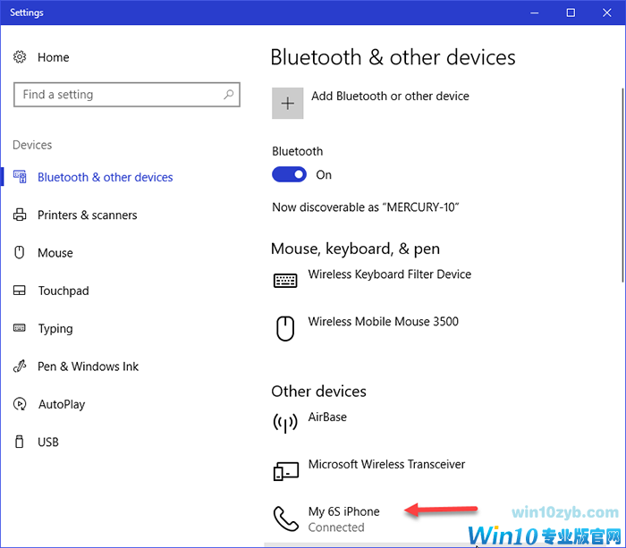 一旦配对过程完成,您将在蓝牙和其他设备页面上看到您的手机。