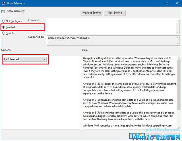 要使策略生效,您需要将遥测级别设置设置为2或更高,然后才能使用以下步骤配置策略来延迟新构建: